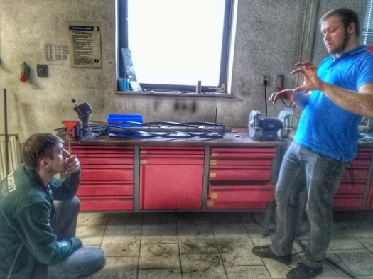 A protože nejlépe může Swardman toto výročí oslavit prací pro naše zákazníky, tak jsme tak udělali. Nahoře vidíte momentku, kdy ředitel výroby Martin sleduje výklad konstruktéra Marka nad metrovým vřetenem.