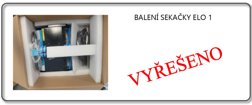 A samotná kapitola je balení sekačky, tak, aby dorazila k zákazníkovi v pořádku. Tím, že je sekačka hliníková a dosahuje tak nízké hmotnosti, tak to asi vede k tomu, že přepravci s balíkem nezacházejí úplně šetrně, přestože je označen jako křehký. Nyní po několika pokusech máme konečně odladěné i balení, které obstojí i na delší cesty do zahraničí.