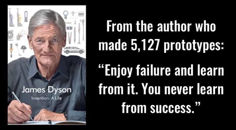 James Dyson udělal 5127 prototypů svého prvního vysavače, než byl aspoň spokojený na té úrovni, že ho začal vyrábět. Dnes na Dyson hledím, jako na firmu, která dělá jen perfektní skvěle funkční věci. Těžko si představit, jak těžký byl začátek, kdy nebýt finanční podpory jeho manželky, žádná firma Dyson by ani nevznikla.