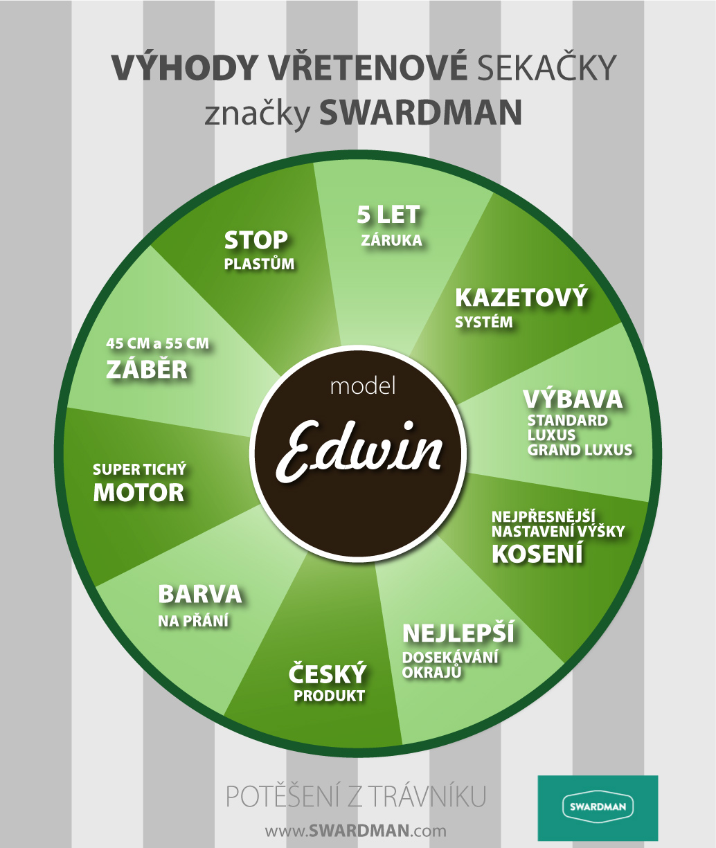 Pro naše zákazníky přinášíme kolo štěstí, kde co kolonka, to srdce trávníkáře zaplesá. Na tomto kole jsou jen „výhry“, které dostane každý, kdo si pořídí vřetenovou sekačku Swardman Edwin.